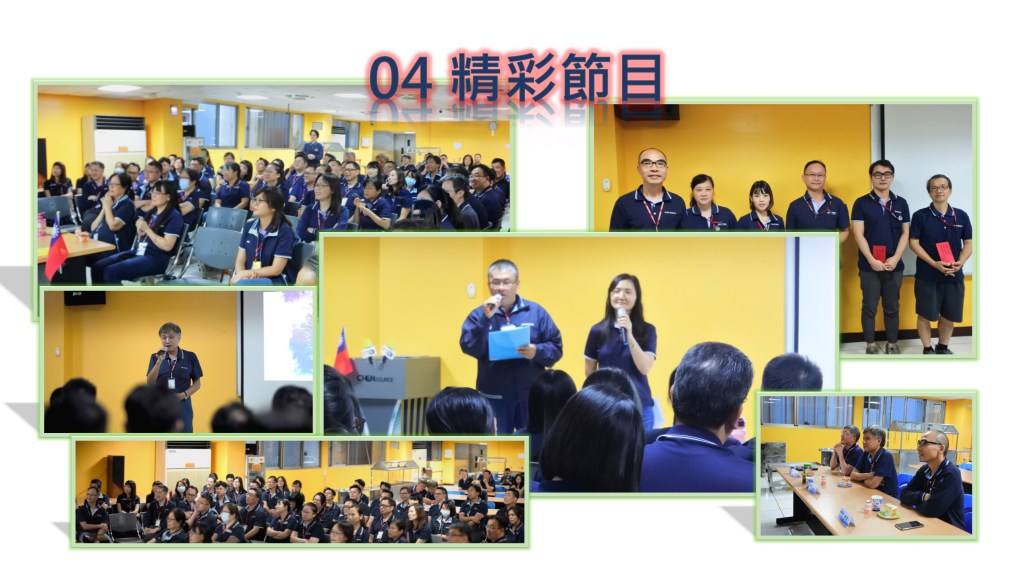 2019年 10月動員月會 由kevinchensource撰寫 發表於 10/25/201911/05/2019 光輝10月,由總經理室、品保、財會同仁來擔綱舉辦動員月會,一年一度的主辦權,讓同仁們能於平日公事之外,能以不同的角度進行跨部門合作。 從一開始的創意發想與演練,主題從毫無頭緒到經過腦力激盪而催生….光輝十月,腳本、內容、軟體、硬體無一不是同仁們全心投入的結晶。 活動前的各項活動準備,滿心期盼的到了正式動員月會的星期三 參加同仁們神采奕奕的入場 入場之後陪著大家一起經歷我們用心準備的精彩節目 本次專題為10月上路新制,主持人 丁丁與文銘強大氣場與主持功力,大家投入的神情,時不時地會心一笑,以證明一切。 動員月會是我們所有勤眾同仁的動員月會 分享此文: 分享到 X(在新視窗中開啟) X 分享到 Facebook(在新視窗中開啟) Facebook 喜歡 正在載入... 相關