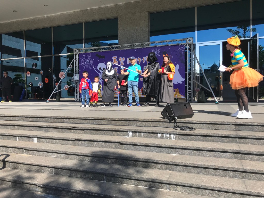 活動當天,小朋友們穿著各式各樣的萬聖裝,開心的跟著主持姐姐Ann大跳特跳,收到了小獎品,更是笑不攏嘴呢! 大人們變裝後,跟本認不出本尊是誰,而且變裝者還要四處拉票,貼最多貼紙的,可以拿冠軍哦!