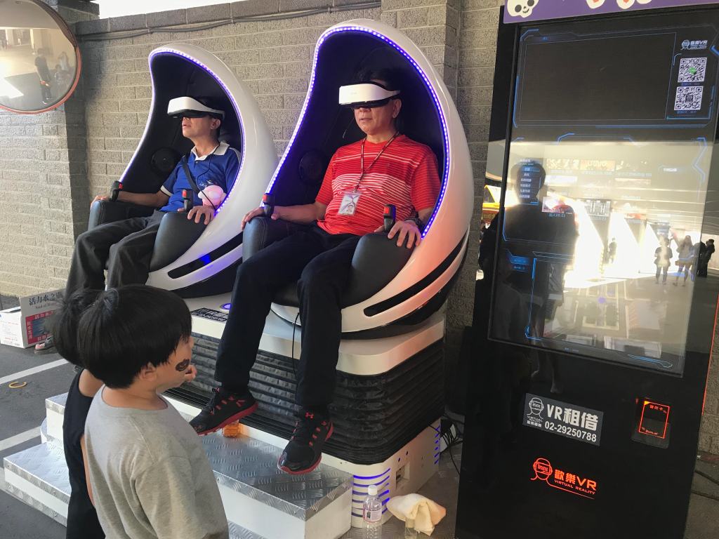 超時空VR體驗,是大排長龍的項目。不單單是孩子們一次又一次的玩,連大人們也都躍躍欲試…筆者親身體驗後,就是因為太真實了,所以五臟六腑翻滾不停,只能閉上眼晴,長嘆一聲歲月不饒人。