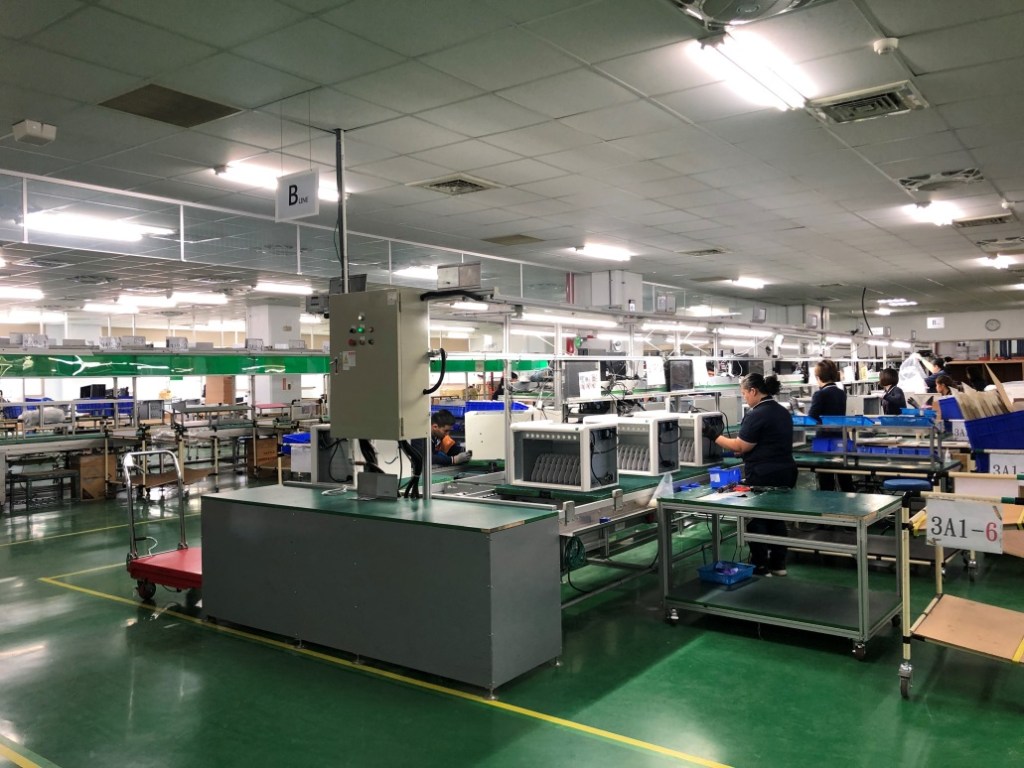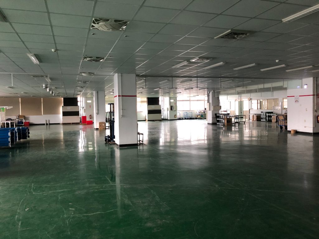 有了第一階段的成功,TPS小組更有信心往第二階段–三四樓整併前進,將原本三大區709坪使用面積的組裝線,併為一大區249坪使用面積,再利用貨架規劃,將二大倉儲區併為一大區,倉儲空間重新規劃,備料動線依產品線別也重新整併,歷盡艱辛,好不容易四樓也淨空了;不但空間再低減1150坪,因產線和倉儲空間重新規畫後,備料動線更容易與產線搭配,空間更充分應用。