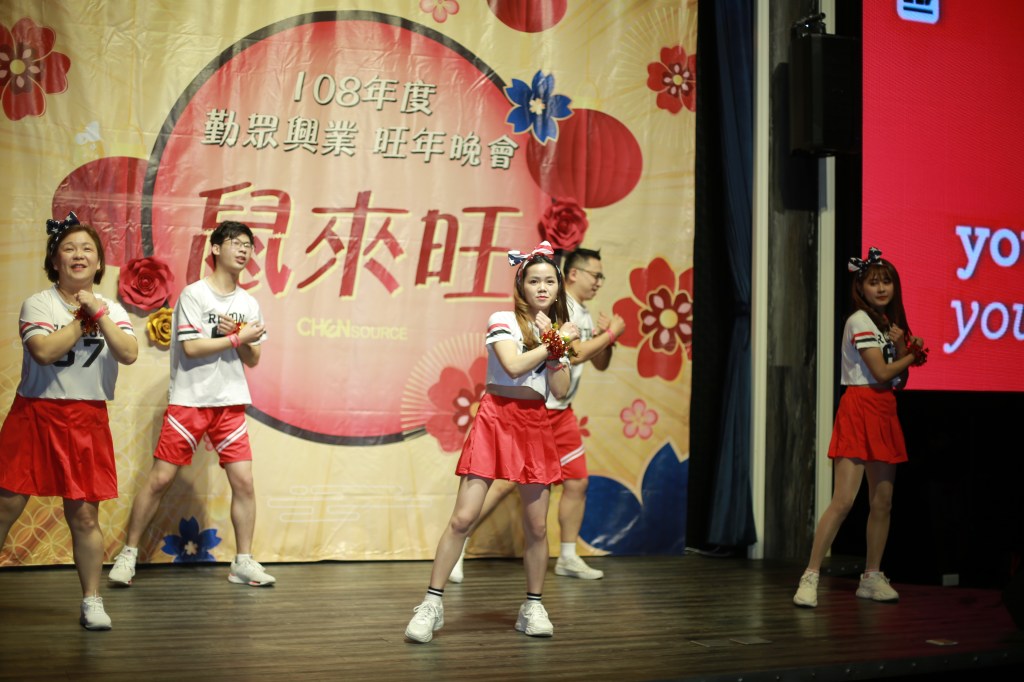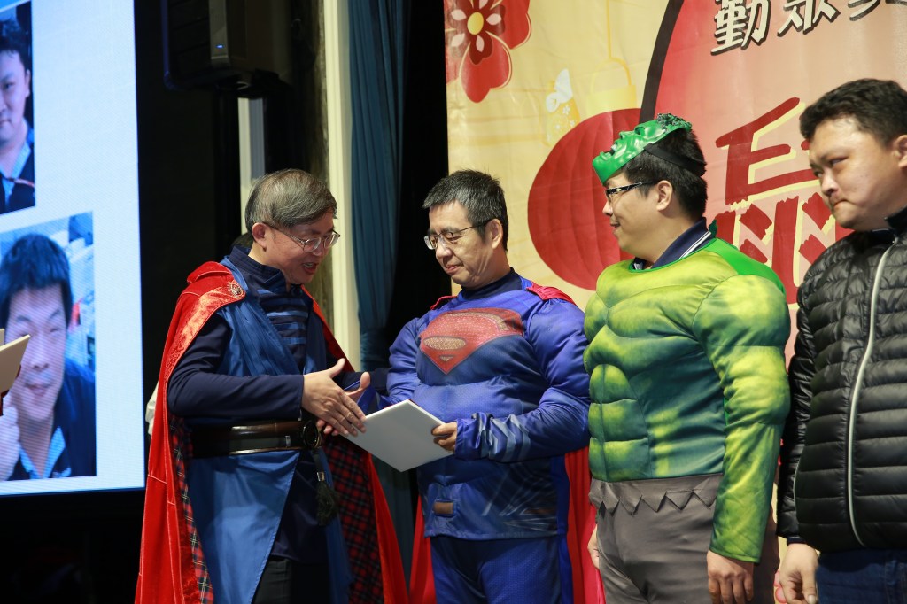 每年最精彩的各小隊表演,由陳董、李小姐帶領主管們領先登場,我們看到平時嚴肅的主管們也有輕快的一面,同時感謝原力動能教練的指導,更榮幸的請到他們來參加晚宴。
