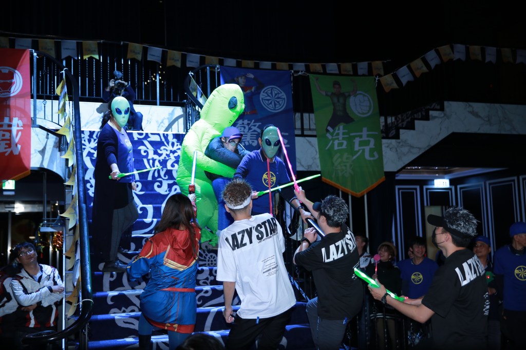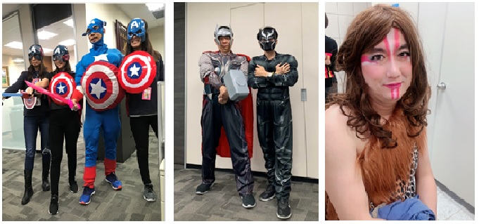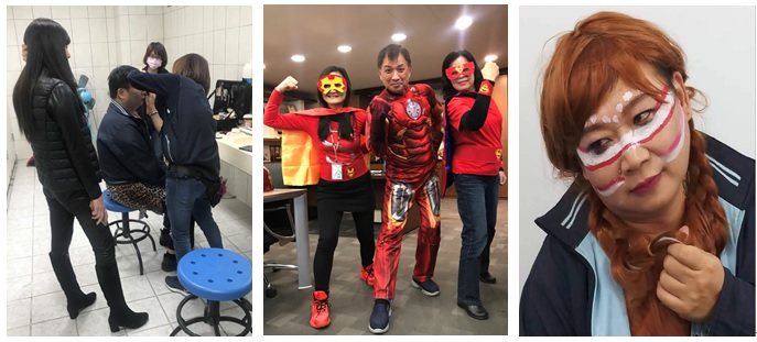 在家庭日萬聖叭大人小孩的精采變裝後…今晚各路英雄的裝扮也令人驚喜。從白天漫威英雄們就開始上班!一直到晚上,英雄們有的參加各隊表演,要換裝!參加主管舞的,要換裝!真的很感動大家熱烈參與的精神,你看照片就知道了!