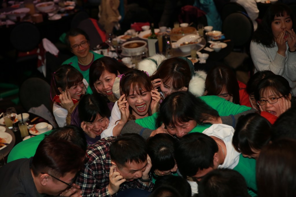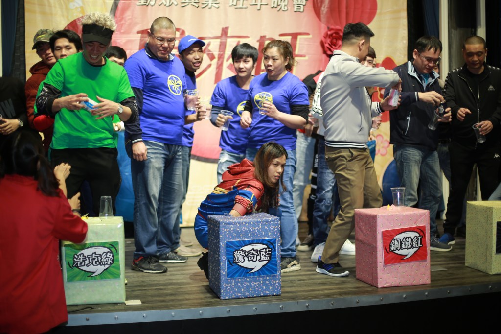 除了吃飯、抽獎、看表演之外,既然叫『英雄盛典終極之戰』,怎麼可以沒有遊戲競賽呢!在去年運動會時,戰敗的隊伍無不在尾牙時費盡心機、用盡力氣,想要奪得最終勝利。看大家圍成一圈,用盡吃奶的力氣,發出驚天一吼…OMG…耳朵都快聾了!