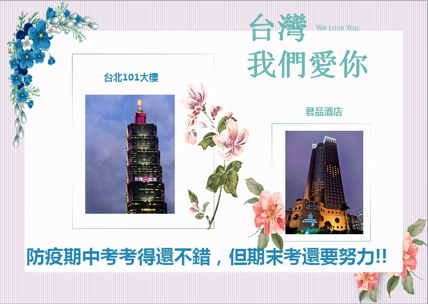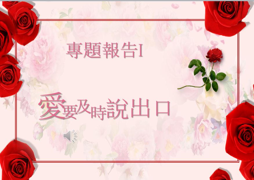 本次月會分享內容的有三部份: 1. 愛要及時 ; 2. 打火哥 ; 3. 台灣防疫有成