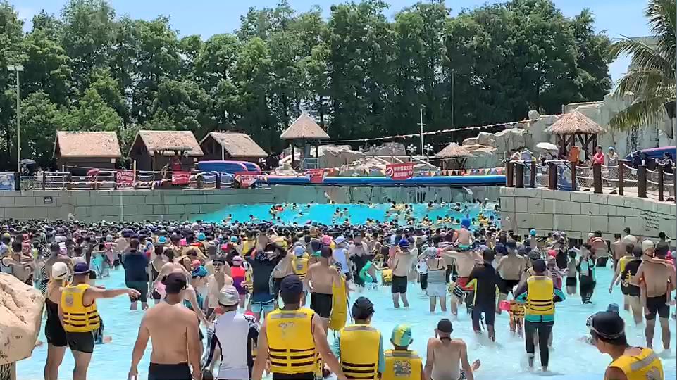來到麗寶樂園的馬拉灣一定要玩的是整點造浪的大海嘯,大伙跟著主持人大叫,隨著音樂節拍潑水,等著大浪的衝擊,每次都被浪推的好遠好遠。