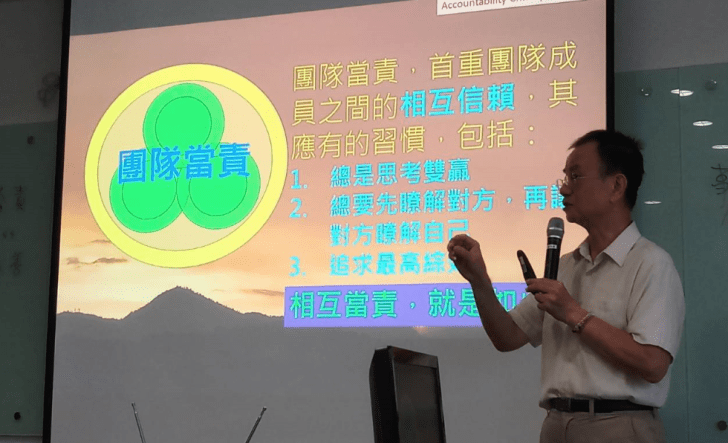 課程最後,陳博表示,已上完當責的三大主題【個人當責、個體當責、團隊當責】,接下來會以演練居多。