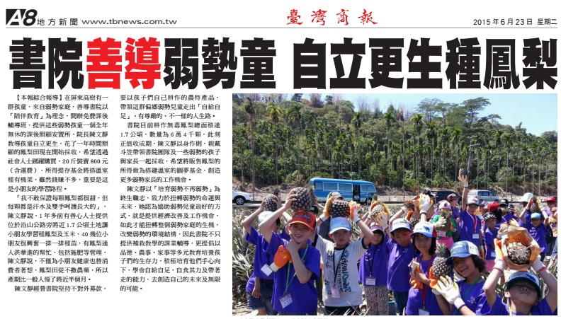 燭光雖微,卻能驅走一室黑暗;陳女士與善導書院同仁將繼續以盡我心、盡我力、不回頭、不放手,一步一腳印地,繼續帶著這些孩童朝自給自足前行的路,做孩子永遠的點燈人,點亮他們的生命之燈,照亮他們的人生路,讓他們可以展開夢想的羽翼,「手心向下,翻轉未來,讓弱勢不再弱勢的」!