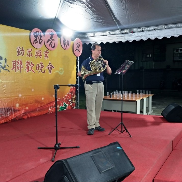 在長官致詞後,勤眾KTV開唱了,本次特別邀請機構工程三部的潘志文經理為我們帶來法國號的表演(美女與野獸),接下來是人力資源部的劉淑敏帶來的吉他組曲,為歌唱活動做暖身。