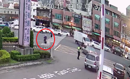 公司為了維護大家的安全,人資部在九月底開始公告相關規定:出門口後將機車熄火,推機車左轉過斑馬線到待轉區。