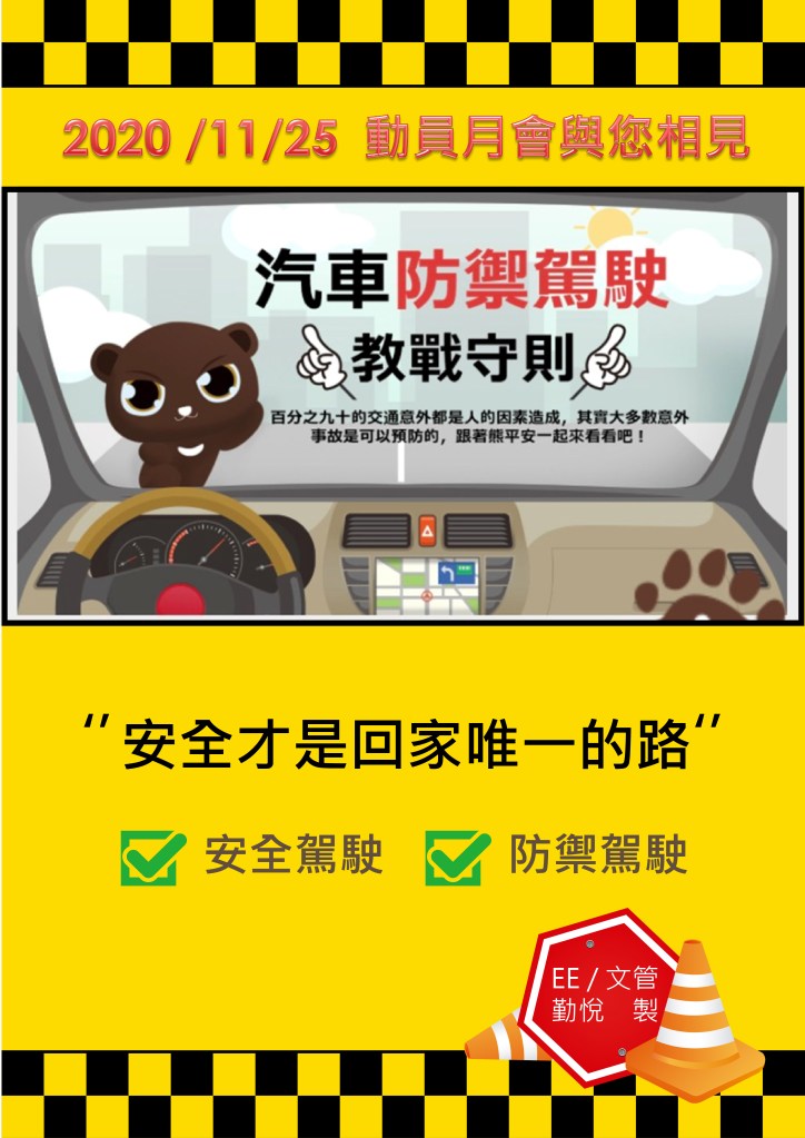 鑒於不斷有交通意外新聞,每一個新聞代表又有家庭遭受到痛苦的意外,本月的動員月會的另一個重點就是要告訴大家甚麼是防禦駕駛,如何避免交通意外的發生,以下是重點摘錄: