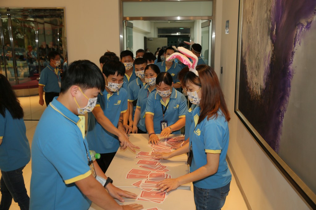 入場前,每位進場同仁先自行抽取一張撲克牌,這張牌攸關能不能讓今年的中秋獎金更錦上添花,想必每位同仁都非常的雀躍期待接下來的活動。