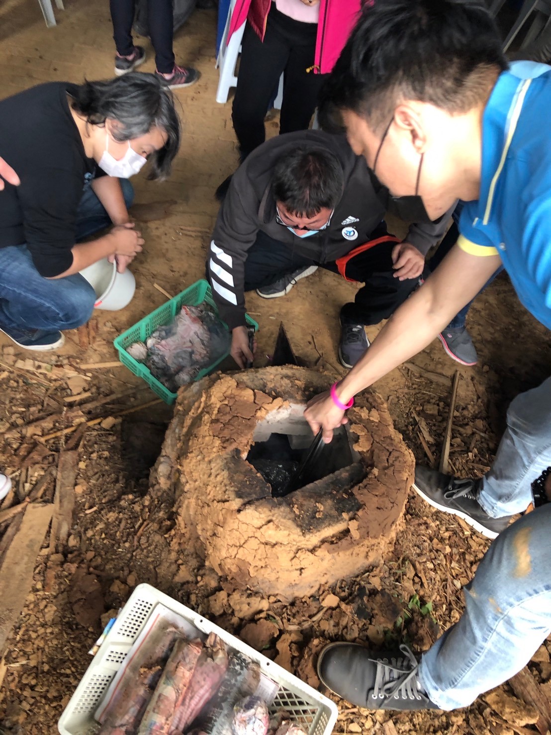 焢窯玩泥巴,農場工作人員教大家如何包裹食材,不同的食材要包多大的鋁鉑紙、要包幾層報紙、要露出來不要露出來,大家還幾記得嗎?熊熊大火,連燒柴都有技巧。最後才開始玩泥巴封窯,相信大家長大後都沒玩過這麼多泥巴吧!