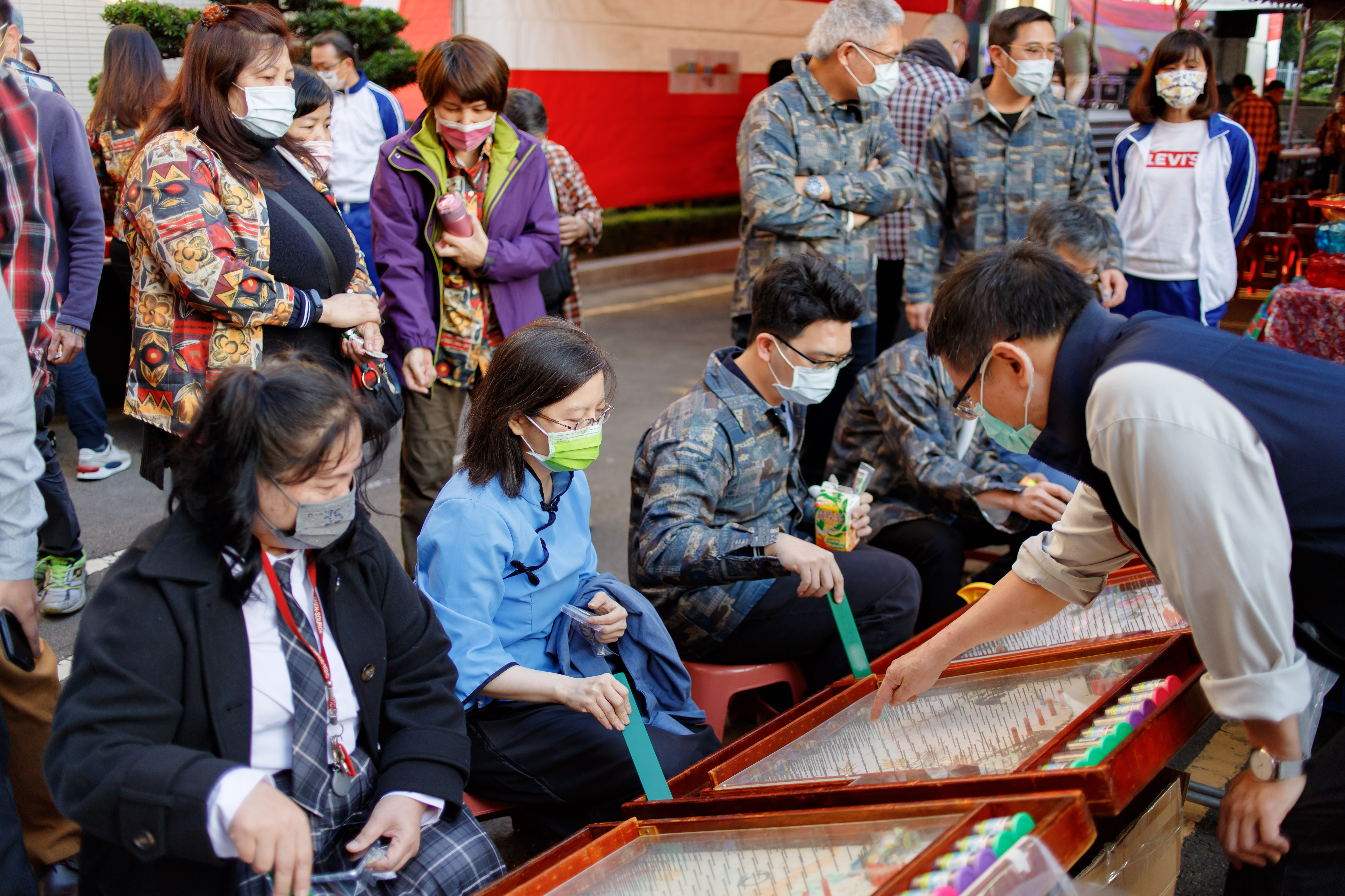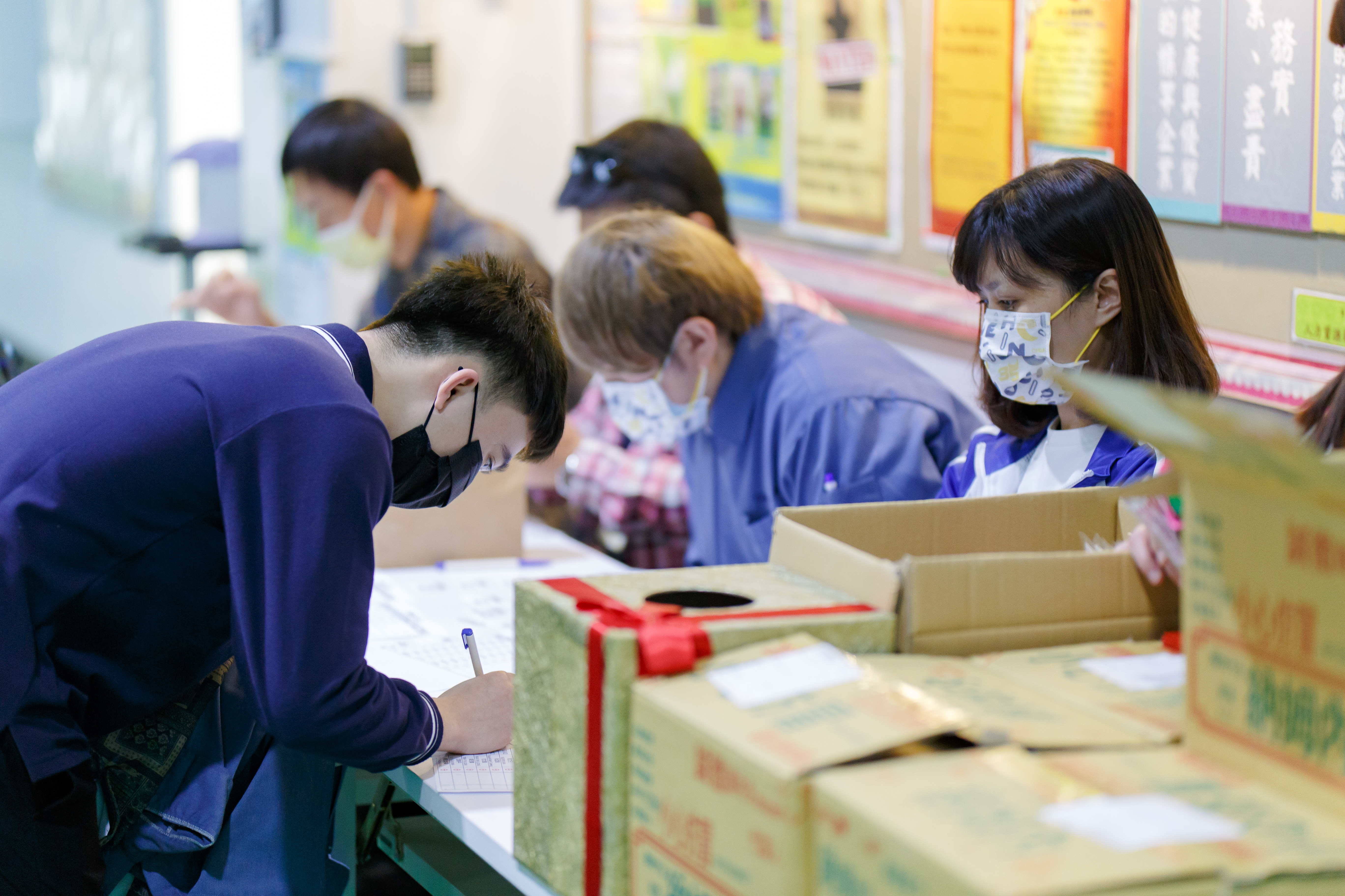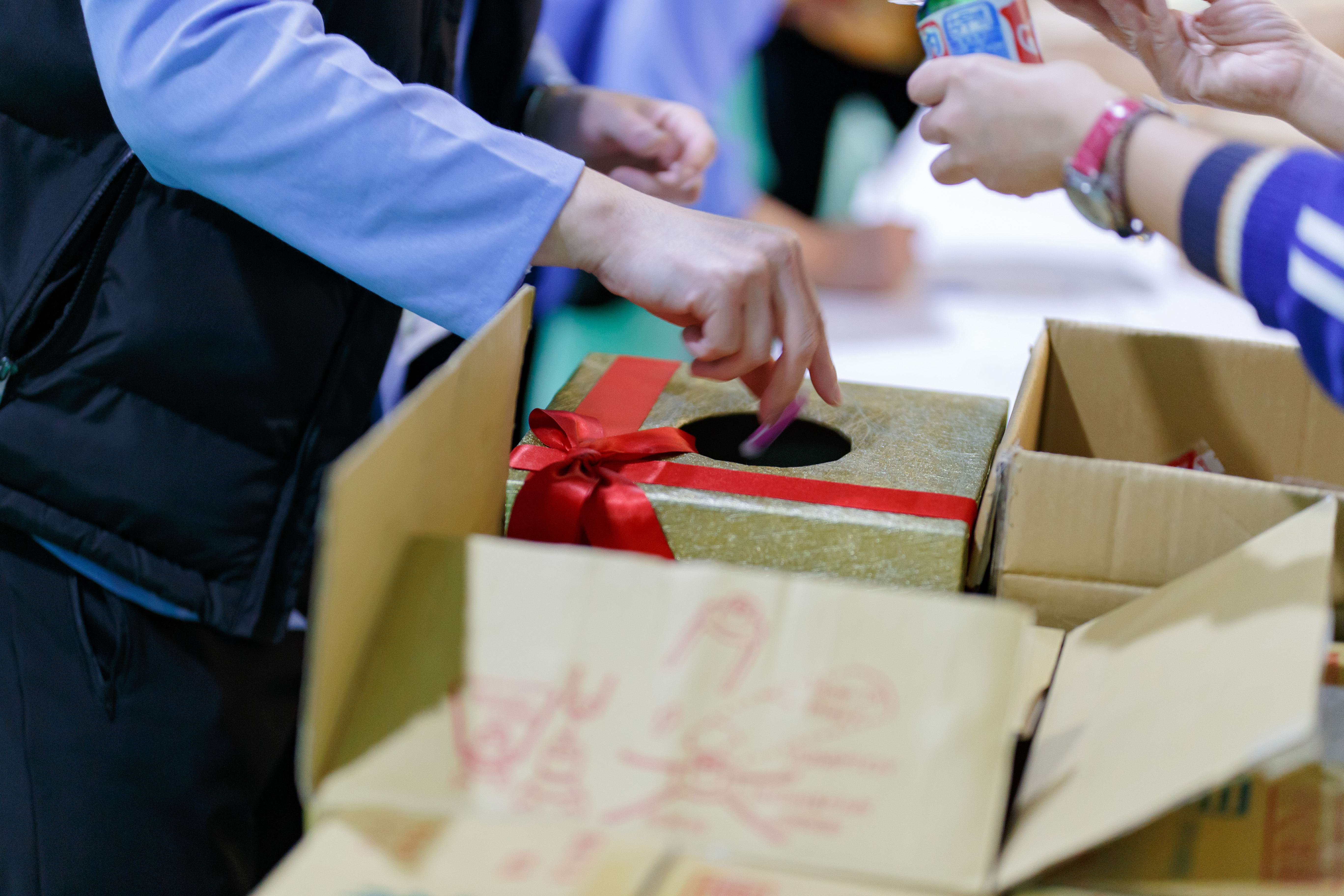 報到處:今年回到傳統紙捲抽獎,每個人簽完名,都小心翼翼滿心祈求的把自己的號碼條放入桶內。