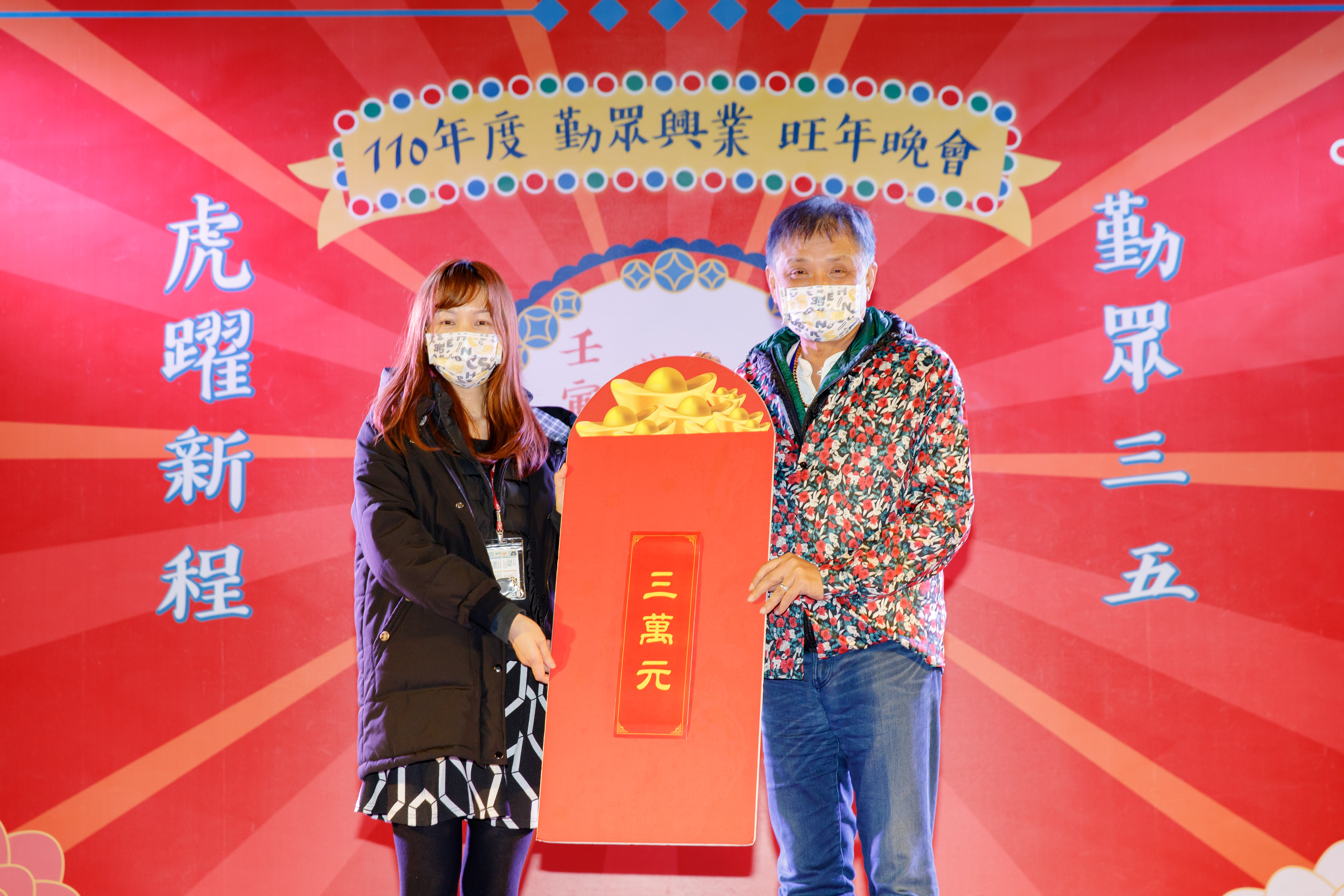 在COVID-19疫情一波波之下,怕被三級管制而無法舉行的旺年晚會(尾牙),看著大家為了活動都準備一段時間了,實在不想再臨時被取消,而在即將舉辦前的最後一星期內,福委們排除萬難緊急從餐廳拉回了廠內舉辦。