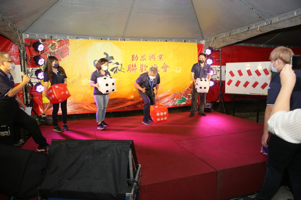 雖然活動在一陣一陣風雨中進行著,但同仁們的熱情也一波波沒有停止。因疫情停辦的中秋晚會,果然還是勤眾最具特色的活動之一。隨著活動的結束,風雨竟然也變小了,希望明年中秋晚會能有個好天氣,讓月亮陪我們一起歡樂。