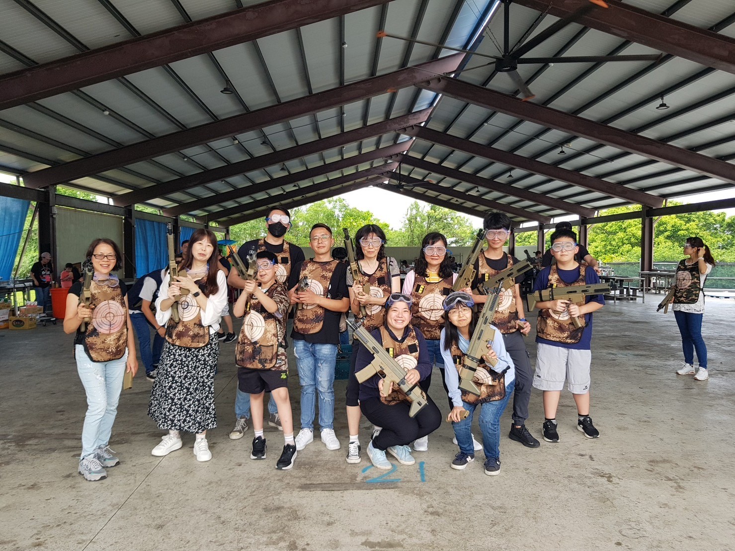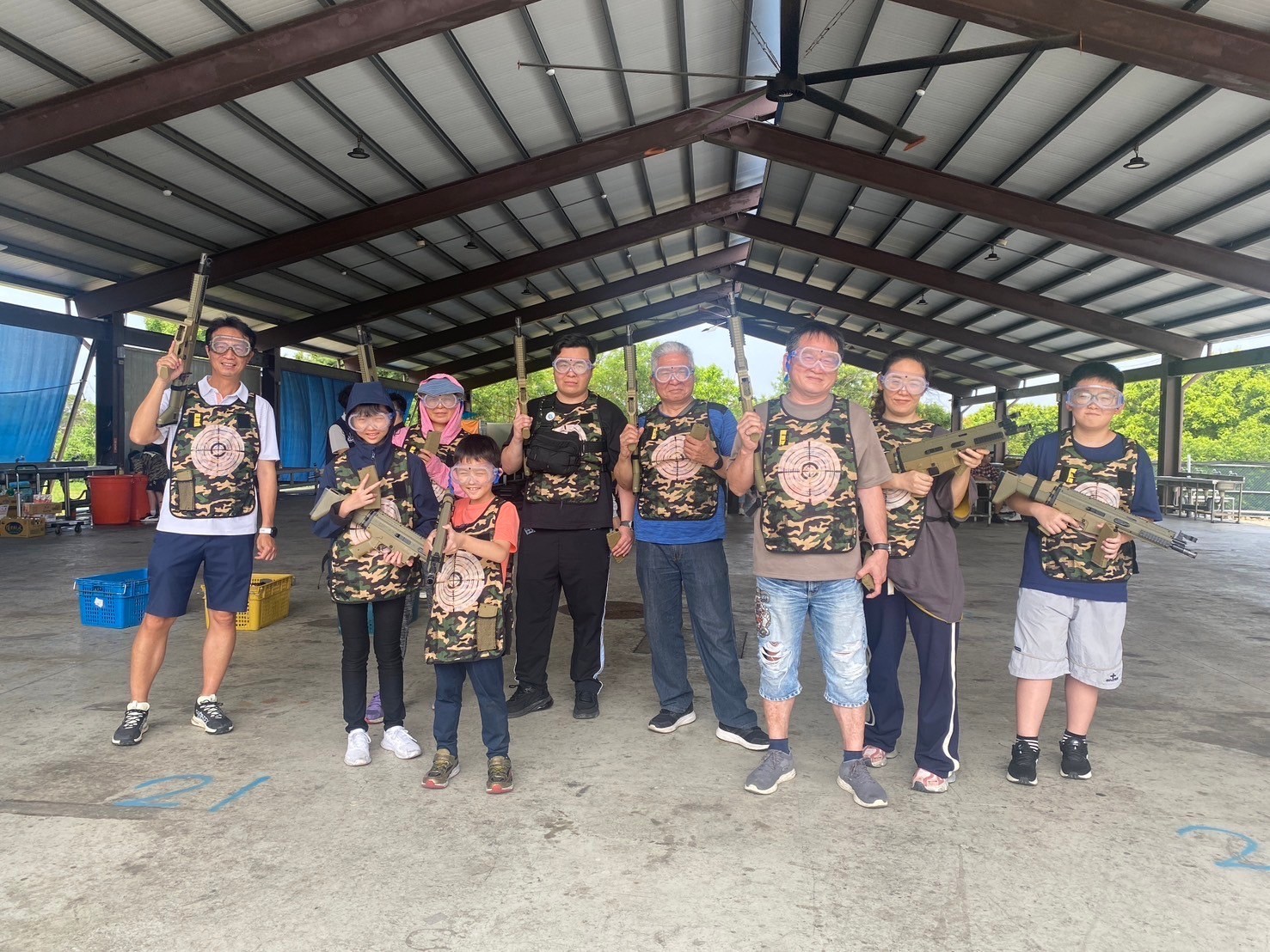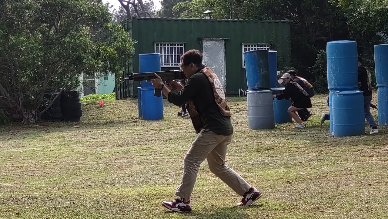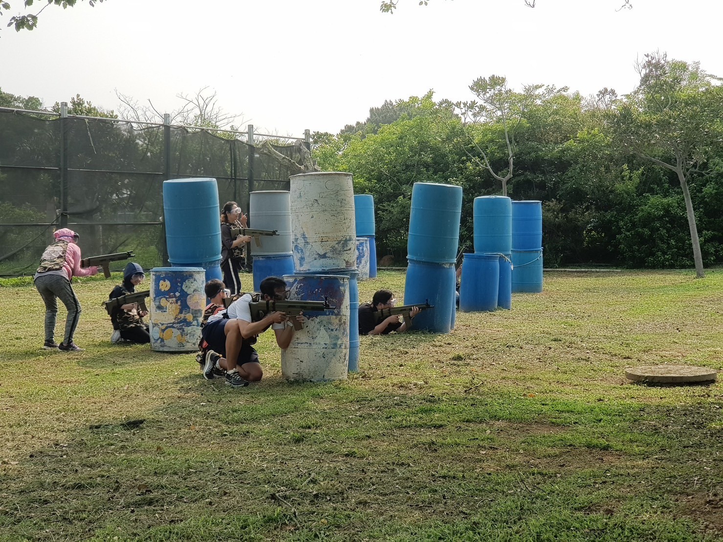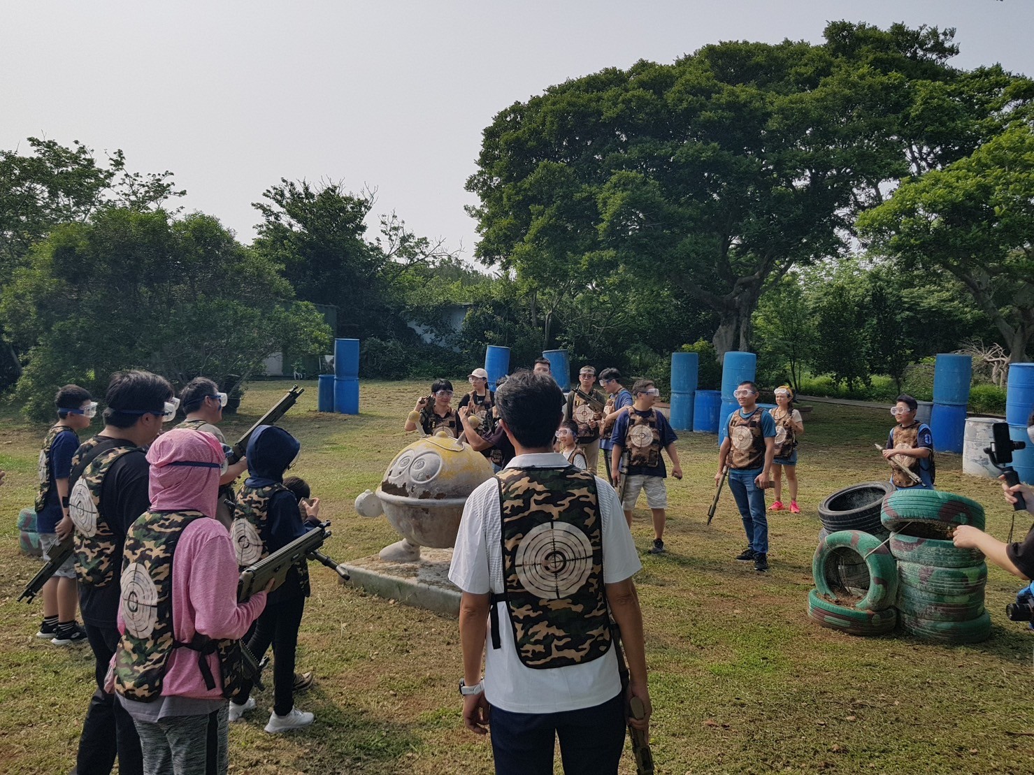 今天最後也是大家最期待的活動【水彈槍】,水彈不是水而是水晶彈,一種水凝膠吸水飽和後形成的球形彈丸,相較於漆彈打了很痛,水晶彈就溫柔多了。出發前,一樣要先聽教練解說,護目鏡一定要戴好,槍不能對著頭射擊。穿好裝備先擺個英勇姿勢拍照,然後就上戰場衝吧!不管你的目標是哪個長官還是爸爸媽媽,這個大人小孩都能一起玩的活動,真的很有趣。